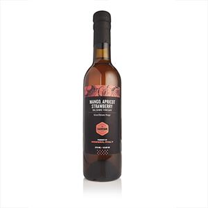 Ingredients: Rectified grape must, white wine vinegar, mango puree, natural sweet strawberry flavor, natural apricot flavor, and naturally occurring sulfites.