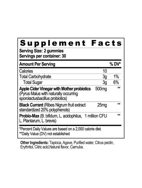 Our apple cider vinegar gummies include antioxidant-rich black currant that may support many aspects of health.